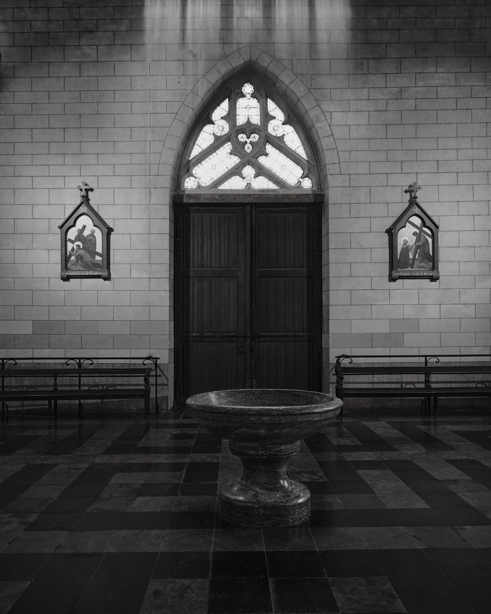 In this post I present the images all shot inside of the church at Valdieu with my 4x5 large format camera on Fomapan 100 and 200 film.
